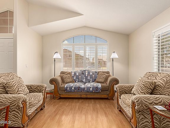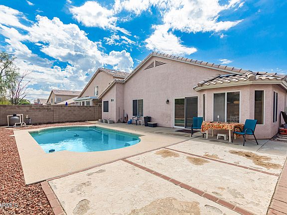 This beautifully refreshed 4-bedroom, 2-bath home features fresh interior paint and a warm, welcoming layout designed for both comfort and convenience. The highlight is the private backyard pool — perfect for enjoying the Arizona sunshine, hosting memorable gatherings, or unwinding with a quiet swim. With no HOA restrictions and no neighbors behind, you'll appreciate the added sense of privacy and freedom. Adding peace of mind, the home comes with a brand-new roof (2025), ensuring long-term comfort and protection. Newer AC (2018). The Water Heater has Flow Tech Technology. Home has Plantation Shutters where it matters. This home is also equipped with solar panels, offering both efficiency and cost savings.$5,000 prepayment of solar lease payments with full price offer by 10/10/2020. Located in 85382 zip code near Loop 101, this home offers prime access to Arrowhead Mall, P83, Desert Diamond Casino, State Farm Stadium, Tanger Outlets, the vibrant Westgate Entertainment District, and nearby medical facilities.