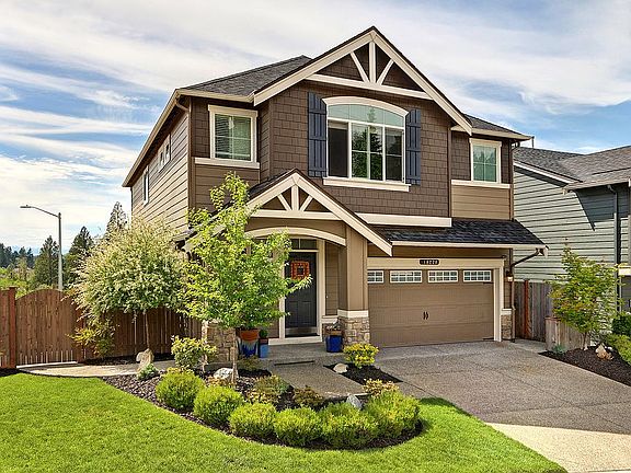 One of a kind 2 story home with daylight basement on a corner lot. This gorgeous home boasts 6 bedrooms, 3.5 bathrooms and is located in the desirable Nature's Ridge neighborhood. Interior features many builder upgrades: carpet and pad, wood flooring throughout main level and more. Open great room is the heart of the home, perfectly designed for entertaining guests. Gourmet kitchen with large and unique island, stainless steel appliances, and quartz countertops for those who love to cook. Owner's suite includes a sleek five-piece bathroom and two large walk-in closets. Basement features an additional living room along with two bedrooms and one full bathroom. Stunning exterior was professionally landscaped with sizable side yard and patio. Enjoy the beautiful sunsets from the large backyard deck and plenty of outdoor space for large gatherings. Welcome home!