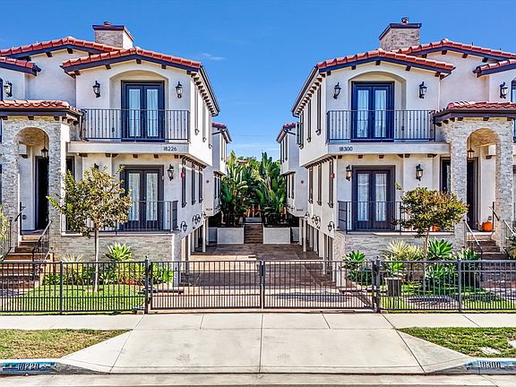 Welcome to 18228 Grevillea! This beautifully designed, three-level townhome offers a spacious floor plan and engineered hardwood floors, making it easy to feel right at home. Home is in excellent condition. Built in 2018. On the main level, you'll find a versatile fourth bedroom (perfect as a den, home office, or Zoom room), an open-concept kitchen, dining, and living area complete with a cozy fireplace, and a full bathroom. The kitchen is both stylish and functional, featuring quartz countertops, a gorgeous backsplash, and seating for two. It flows seamlessly into the dining area, which comfortably accommodates four or more. Step out onto the balcony to enjoy fresh air, space for a gas grill, and seating for six perfect for outdoor meals or relaxing evenings. Upstairs, the primary suite is your retreat, with its own fireplace, Juliette balconies, and a luxurious en-suite bathroom featuring marble finishes, a walk-in closet, a jetted tub, and a separate glass-enclosed shower with a hand sprayer. Two additional bedrooms and another full bathroom complete the upper level. On the street level, you'll have direct access to a two-car garage with extra storage. The Grevillea Gardens complex has recently updated its landscaping, and the property includes a secure gated entrance for vehicles. Your new home is conveniently located in the Torrance Unified School District, with a Redondo Beach mailing address. Commuting? You're just five minutes from the 405. Want to get outside? El Nido Park is a quick five-minute walk away. Plus, restaurants, shopping, and services are just around the corner. This is a wonderful opportunity don't miss out!