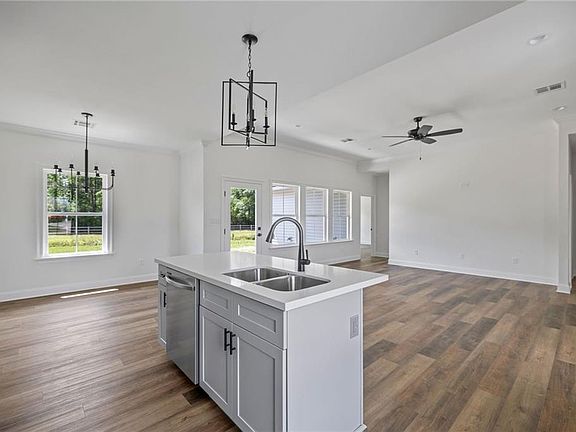 Explore this brand new, gorgeous 3 bed 2 bath home in Wolf Lakes in Loranger. This beauty sits on a spacious .26 acre lot with no rear neighbors. Stunning vinyl plank flooring throughout the home. Featuring an open floor plan, bringing in plenty of natural light and perfect for hosting your friends and family. Stainless steel appliances included. Soft closing, shaker style cabinets paired with quartz countertops and matte black fixtures giving this home the perfect modern look. Master bathroom boasts a garden tub, custom tile walk in shower, double sink vanity, and a large walk in closet. This home truly has it all & is ready for its new owners! Owner/agent.