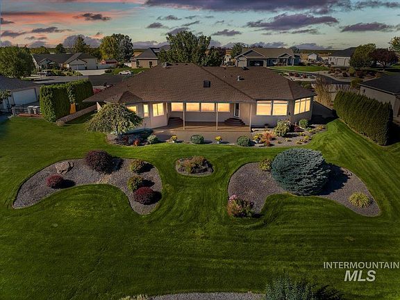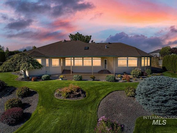 VIEWS! Welcome to your dream home! Captivating panoramic views of Lake Lowell from your east-facing backyard, visible through an extraordinary amount of windows that flood your home w/natural light. This stunning single-level residence offers 3,044 square feet of spacious living, featuring 3 bedrooms & 2.5 baths, perfectly designed for comfort and functionality. Set on almost an acre of fully irrigated land, enjoy lush landscaping & ample outdoor space. The updated kitchen is a chef's paradise, equipped w/ smooth countertops, custom hickory cabinets, & sleek stainless steel appliances. Recent upgrades include a new roof (2022), a newer furnace and A/C (2021), and a new well pump (2023), ensuring peace of mind. The 4-car garage features a workshop area, while RV parking is available for outdoor enthusiasts. Located just seconds from St. Chapelle & Sawtooth wineries, this home combines serenity and exceptional local amenities. Don’t miss your chance to own this exceptional property—where luxury meets lifestyle!