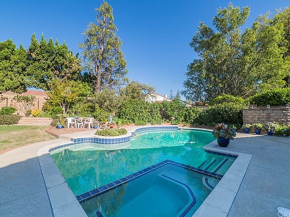 This exceptional single story pool home is situated on a quiet cul de sac street in a desirable Northridge neighborhood and located on over a 13,000 Sq. Ft lot with a variety of mature fruit trees. This beautifully family home offers three Bedrooms, a den, a family room, two bathrooms, 2,329 square feet of spacious living space, a three car attached garage with direct home access, a private backyard with a sparkling pool and spa. The inviting double door entry welcomes you into a beautiful entry way marble flooring that opens to a spacious living room with vaulted ceilings, a fireplace and adjacent formal dining room. The family room features 9? ceilings, a wet bar and French sliding doors to the backyard pool area. The kitchen includes clean tile counter tops, loads of cabinet space, stainless appliances and a dining area. The private master suite boasts vaulted ceilings, a sliding door to the pool area, walk in closet and bathroom with dual sink vanity, a shower and separate Tub. The den features double door entry, vaulted ceiling and built in bookshelves. Other features include an indoor laundry room, central air and heat, whole house attic fan, copper plumbing, a backyard with multiple citrus trees, apple trees, avocado tree, sprinklers front and