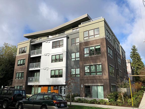 Ground level 1 bed 1 bath. Concrete ceilings, patio area, stays cool in summer! Building built 2016 - highlights include contemporary finishes, stainless steel appliances, solid surface countertops, washer/dryer/dishwasher in every unit, rooftop deck common area. Walk to Trader Joes, Safeway, Link Light Rail, bus stops and more. 12 month lease. Tenant pays submetered utilities. Deposit 1000 (850 refundable). Pets ok on case by case basis with pet rent and $250 refundable pet deposit - Cats $25/mo, dogs $40/mo. Garage parking ($200/mo) is available. $35 application fee. No smoking no recent evictions
