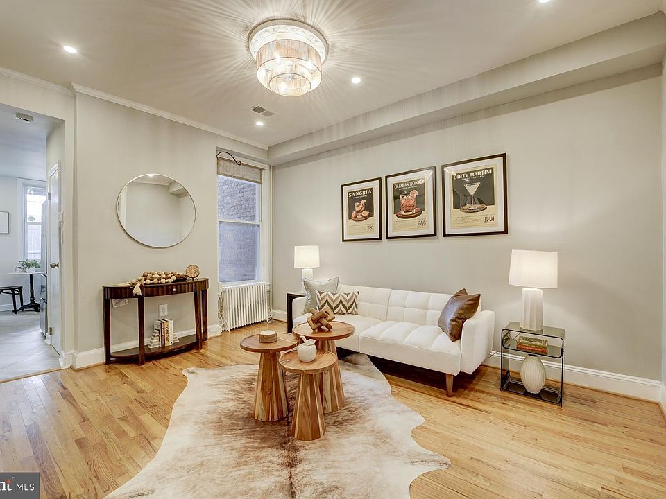 OPEN HOUSE Saturday, 8/28 from 1-3pm. Don’t miss the opportunity to own this surprisingly spacious gem in historic LeDroit Park—where timeless architecture meets modern city living. Perfectly positioned just minutes from downtown D.C., this federal-style rowhome blends classic charm with every contemporary comfort. Inside, you’ll find 3 well-appointed bedrooms, including a true primary suite with spa-inspired bath and streams of natural light. Two additional bedrooms, a renovated hallway bath, and the convenience of upstairs laundry complete the upper level. But it’s the outdoor spaces that set this home apart. The private rooftop deck is a showstopper—boasting 360-degree views of the city skyline and serving as your front-row seat to Fourth of July fireworks over the National Mall. Entertain, unwind, or simply take in the view—this is city living at its very best. On the lower level, a patio doubles as Off-Street Parking or use as additional entertaining space. A striking mural by renowned artist Aniekan Udofia, specially commissioned for this home, adds a one-of-a-kind artistic touch you won’t find anywhere else. With a Walk Score of 10/10, you’re steps from vibrant restaurants, neighborhood parks, and just an 9-minute stroll to the Shaw Metro (Yellow/Green lines). Life in LeDroit Park means easy access to the city’s best, from the charm of historic Annie J. Cooper Circle to the energy of downtown—all right outside your door.