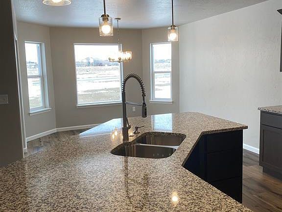 Popular Hawthorne floor plan including new exterior design, split bedrooms with private primary bedroom location, spacious primary bathroom with five-foot tiled shower plus soaking tub, dual eight-foot vanity, large walk-in closet, bay windowed dining area adjacent to deluxe kitchen with corner pantry, large island, granite counters, stainless appliance package, exterior vented exhaust fan over 5 burner gas range, oversize 3 car garage with workshop area, nine foot interior ceilings plus vaulted ceiling over great room, stepless exterior entry's, stone faced corner fireplace, conditioned stem wall crawl space, rear covered patio, spacious 10,000 sq. ft. lot, energy efficient construction. Superior quality and great value! Note- interior pictures as shown are of a completed home to show finishes, etc..