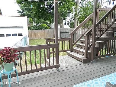 This is a recently refreshed 2-bedroom, 1 bath apartment on the first floor in Rensselaer. It sits on a quiet street across from a large city park and playground area. Walking distance to Jr and Sr High School. There is a fenced back yard off a rear deck, and a shared driveway with 1 off-street parking space. Washer and dryer in unit. Heat and hot water included in the rent!