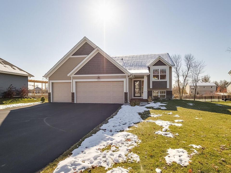 Dare to Compare! Nearly New & Ready for You! This 2016 Built HUGE Split Level Home Features 3 Bedrooms & 2 Baths Main Level! Must See to Appreciate Open Floor Plan Boasting Vaulted Ceilings in Main Living Area! White Enamel Cabinetry! Stainless Steel Appliances! Water Softener Included! Large 3 Car Garage! Private Master Bath! Lower Level WALKOUT Complete with a Gas Fireplace! 4th Bedroom and 3rd Bath-Room to Add 5th Bedroom If Desired! Great Decor & ALL NEW CARPET/PAD Included-Ask Agent for Details! Fantastic Level Lot on Pond-Bring the Skates! Irrigation! Centennial Schools! Do Not Miss This Opportunity-See Now! Be Home for Christmas!!! Just Minutes Off 35!