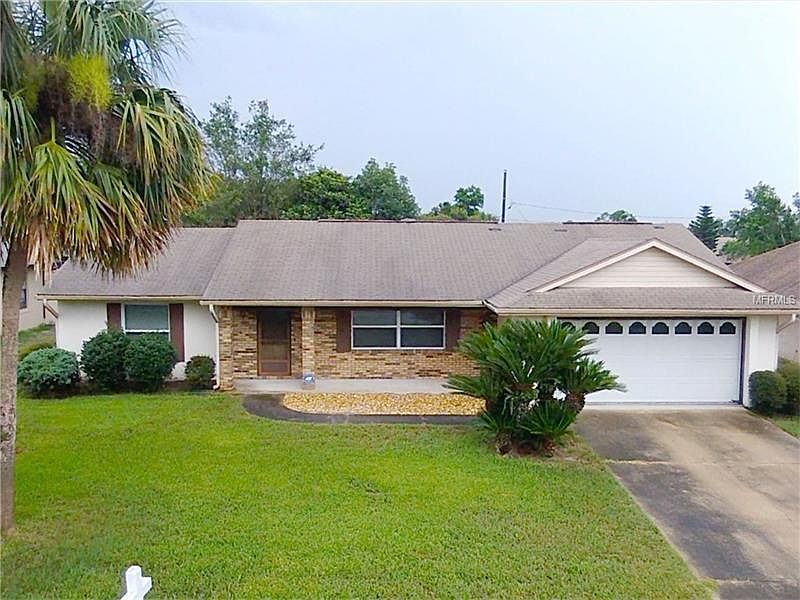 Well taken care of home in one of the nicest locations in Deltona among other well-kept homes and only minutes to Interstate 4, the Orlando Metro Area, and the beaches. Quality built with an attractive front porch and brick exterior and all tile throughout except for in the bedrooms. Spacious & fully equipped eat in kitchen plus a separate dining area. Split bedroom open floor plan with cathedral ceilings and an enclosed and air conditioned tiled Florida room and new windows throughout the entire house. All this on a nice oversized fenced lot and ready for immediate occupancy.