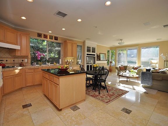 Wow! Picture perfect one story home! Fabulous floorplan, featuring grand living & formal dining rooms; expansive kitchen/great room! And what a kitchen! Stunning Walker Zanger full backsplash & counters, plus slab granite food preparation island! Amenities include 42 built in refrigerator, central vac, laundry room with sink, beautiful interior paint in warm hues, entertainment built ins & much more. Luxuriate in the marble master bath with a 6' soaking tub & marble shower with grab bar. No interior steps either! The floors are Jerusalem Gold stone with a slate key inlay that is absolutely breathtaking. Enjoy the private backyard replete with built in BBQ & stone bar counter. Enjoy the always sunny south facing rear yard too. Your guest will be impressed with the dramatic stone columns and steps at the curb, & the front courtyard...so pleasant a place to sit & enjoy the proximity to open space. Located on one of the quietest streets in all 24 hour guarded Rancho Conejo, it's perfect!