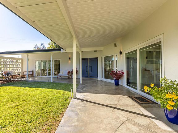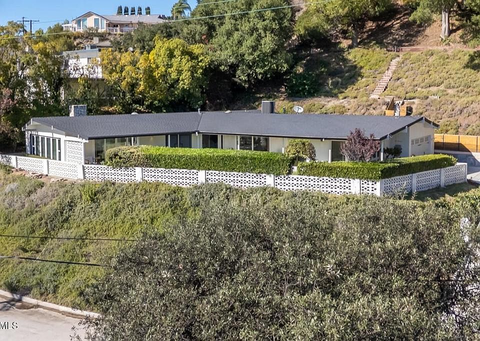 Perched atop a gentle hill in the sought-after San Rafael Estates, this exceptional mid-century modern home blends timeless design with modern comfort to elevate everyday living. A flat, private front yard framed by lush greenery creates a serene escape from city life and a welcoming first impression. Classic double doors open to a formal entry that sets the tone for the home's warm and inviting style. The spacious living room is bathed in natural light, anchored by a floor-to-ceiling stone fireplace, soaring beamed ceilings, and an expansive wall of windows that bring the outdoors in, the quintessential mid-century touch. At the heart of the home, the open-concept kitchen and dining area are designed for both daily living and effortless entertaining. The sleek white kitchen features an island cooktop, allowing the chef to stay connected while preparing meals, with views of the front yard. A designer chandelier, built-in shelving, and direct patio access make the dining area an ideal gathering space. The primary BR suite is a peaceful retreat, offering a private entry, a wall of closets, and a beautifully updated bath with dual vanities, illuminated mirrors, and a separate tub and shower. Two additional spacious, bright and airy bedrooms share a hallway bath. The back has a patio area and hillside stairs that lead to an upper terrace with sweeping views of the city and beyond offering a blank canvas for your outdoor vision, whether it's a garden, seating area, or entertaining space. Additional features include: an oversized two-car garage with direct interior access and newly finished epoxy floors, Central AC & Heat, wood engineered flooring & exposed beamed ceilings throughout, stainless steel appliances, and so much more. Located just minutes from the 2, 134, 5 & 210 freeways and a short drive to DTLA, it's the perfect combination of convenience and tranquil escape.