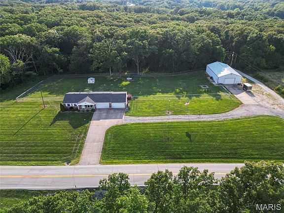 JUST what you have been looking for! This beautifully updated ranch-style home sitting on 2.5 unrestricted acres in the highly sought-after Wentzville School District! Offering space, privacy, and convenience. Featuring 3 bedrooms and 1.5 bathrooms, the home has been thoughtfully renovated with luxury vinyl plank flooring throughout the main level, fresh paint, new doors, windows and Levolor blinds, and quartz countertops in the kitchen, which also includes stainless steel appliances. A partially finished basement offers extra space to relax or entertain, complete with vinyl flooring! Plus, the 4-car garage provides ample room for vehicles, tools, and toys. Outdoors, enjoy an expansive fenced-in backyard with a small deck off the kitchen and fire pit area, perfect for gatherings or quiet evenings. The property also boasts a massive 36x60 spray foam insulated shop with a wood-burning furnace, ideal for hobbyists, entertaining, mechanics, or additional storage. Just 4 minutes off the David Hoekel Parkway and I-70, the convenience is unmatched! Don’t miss this rare opportunity to own an updated home with acreage, space to spread out, and quick access to schools. Schedule your private tour today!