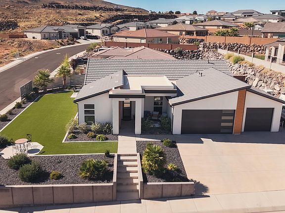 Sleek Modern Living with Spectacular Views. Built in 2021, this stunning one story home perfectly combines modern design with the beauty of Southern Utah's landscape. On a corner lot, zero landscape, and sweeping views of Hurricane Valley and Zion National Park, this home welcomes you with open, airy spaces and designer touches throughout.