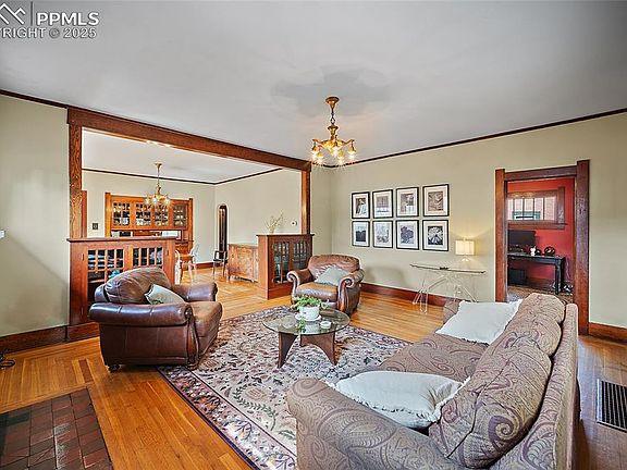 Welcome home! This beautiful 1922 Craftsman's bungalow boasts original flooring, woodwork and lighting throughout. Located on a historic tree lined street in the heart of the city. The iconic covered front porch w/ tongue and groove ceiling is the perfect place to greet guests or enjoy your morning coffee. The main level features original flooring and stunning woodwork. From the tall base boards, wide casing to the crown molding and the most beautiful original built-ins. The living room features a wood burning fireplace w/ brick surround and tile hearth that is framed by two gorgeous windows. The living and dining rooms are separated by stunning original built-in w/ glass inlay doors, while the dining room features the most beautiful original built-in buffet w/ top and bottom storage. Just off the main entrance, currently being used as an office. This room could also be used as a bedroom and features wood flooring and stunning original lighting. The primary bedroom w/ direct access to the front bedroom/office is open and bright. The main level full bath features a claw foot tub. The third bedroom boasts a quaint sunroom perfect for an art studio, plant haven or just a quiet place to sit and recharge. The kitchen features SS appliances and countertops w/ just the right amount of updates. The original hoosier cabinet adds the perfect amount of charm. From the kitchen there is an enclosed patio w/ direct access to the lovely back yard. The partially finished basement w/ a spacious laundry room boasts extra storage and counter space. The full bath w/ jetted soaking tub and huge walk in shower. The large bedroom has a custom built-in and good size closet. The home sits on a large lot that is zoned R2 w/ a 1 car detached garage and plenty of off street parking. Both the front and back yards are gardeners' dreams w/ fruit trees, a variety of herbs as well as vintage roses. Don't miss this opportunity to own a piece of history in the heart of Colorado Springs.
