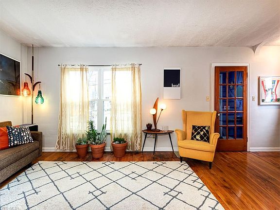 Home, sweet home - waiting just for you! Step into a sunny, spacious living room, and immediately feel the welcoming vibe, inviting you to sit down and relax! Pretty archway transitions between rooms, lovely hardwood floors, and plenty of natural light with great views throughout testify to the thoughtful and functional layout... You will love the eat-in kitchen with a retro breakfast nook overlooking the pretty back yard - so convenient for a coffee or a casual meal... The first floor bedroom, currently used as a den, and a full, updated bathroom completes the first floor. Upstairs - a large master bedroom with an adjoining additional bedroom for a yoga spot, nursery, office area or a private sitting area - your retreat from the daily hustle and bustle... There is a full basement, partially finished with a custom bar, perfect for socializing and gatherings... and as warmer weather arrives - your favorite spot to unwind with a lemonade and BBQ will be the deck and back yard, fully fenced, with season-long color from perennials, and fresh herbs grown in a raised garden bed. Conveninet detached oversized 2 car garage. And right down the street from the Metroparks and Lake Erie... Terrific location- close to parks, transportation, shopping, freeways, Waterloo Arts District, and all of the independent restaurants on E. 185th. Come see it today!