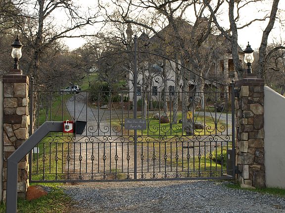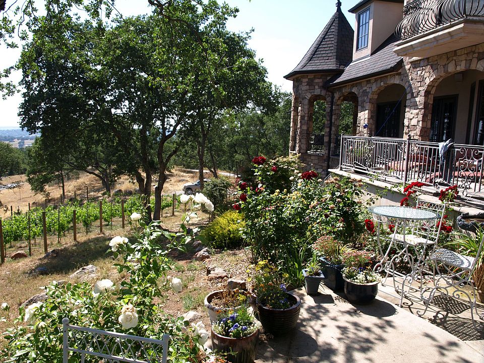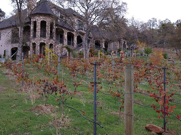 It is a true Chateau with outside views from every room, all full custom. There are two master suites, one on each floor, the main being on the main floor with a giant walking closet, and a hexagon marble bath, that hosted parties! The kitchen is in the center with amazing views of the deck arches and Bella Rosa vineyards and Sonora basin; family room with a large wood burning fireplace, catherdral ceiling living room with a marble propane fireplace, office, dining room, full size pantry on main floor. The first floor is mostly gorgious 3/4" solid antiqued walnut hardwood floor. The 2nd floor boasts 4 bedrooms, and a home theatre room with both a TV and large 100" projector screen. The basement is another 1000 square feet or so, with an amazing cave style wine cellar, a garden room and a full bath. The home has multiple audio zone systems with local volume control in just about every room. Also wireless and wired internet. And a central vaccum system throughout. The kitchen is a dream to anyone that likes to work in there; double Wolf convection oven; trash compactor; warming drawer, filtered reverse osmosis water. The area close to the house is fenced in and gated. Around the house there are rose gardens, and a number of Japanese maples that provide color most of the year. 200 Petite Syrah, Mourvedre, and Grenache Vines make up a vineyard for the pure pleasure of making your own wine. All the landscaping is automatically watered with 5 different zones. An ADT security system is installed throught the property. Neighborhood Description Quiet; no traffic. All custom homes on a minimum of 3 acres. Amazing views.