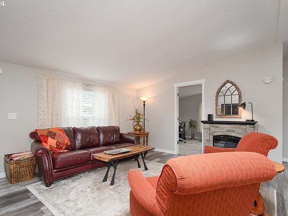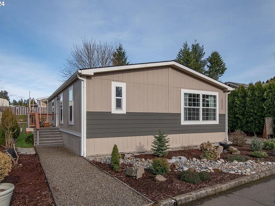 Incredible opportunity to buy your dream home in desirable County Village Community. A new standard for luxury and affordable living. Modernized overhaul in 2021. This home offers an abundance of windows letting in all the natural light perfect for your plants! 2 Bedrooms, with a Den, 2 Full Bathrooms & over 1300+ Sq. Ft of living space. Ash plank floors, soft wall colors and warm tile accents. A large Living room and separate family room will have you hosting all the family gatherings. The kitchen is a cooks delight with new shaker cabinets, quartz countertops & undermount sink. Upgrades abound. Fully landscaped with a Heat Pump and a NEW shed! Space rent is $752 monthly W/basic cable included. Community amenities include RV parking, playground & basketball court! Great Oregon city schools. (Buyer's lease begins when Seller's monthly lease ends at close of sale.)