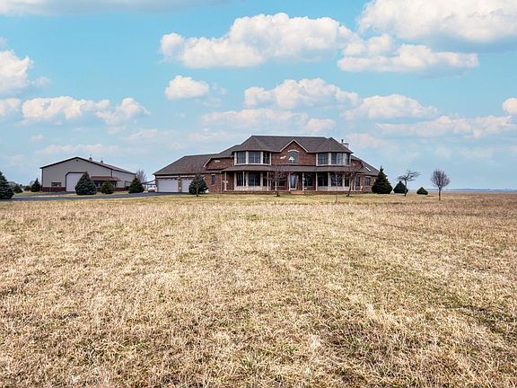 Absolutely stunning custom home built on 10 acres that you will be proud to call home with panoramic views from every room! The seller thought of everything when he had this home built down to ever last detail. This home features 4 generously sized bedrooms 3 full bathrooms and so much more! Once you step inside this incredible home you will be in awe of the 2 story foyer with gorgeous curved staircase. Just beyond the foyer is an open concept oversized kitchen and livingroom with vaulted ceilings. The kitchen features an enormous kitchen island, cherry wood cabinets galore, walk in pantry, granite counter tops, all stainless steel appliances and doors leading to the resort like backyard. The livingroom features a double sided fireplace and etched glass French doors leading to master suite. You will not be disappointed when you see this suite. Spacious and serene is what you will find inside. Room for all of your wardrobes in the walk through closet, double vanity, double spa tub and walk in shower are just a few of the details. There is another bedroom on the first floor with etched and stained glass French doors. This bedroom also connects to a well appointed bath. Once upstairs there are 2 more spacious bedrooms that share another well appointed bathroom. There is also a finished bonus room area that can be anything you would like it to be. Back on the main floor you will find an outstanding laundry room with plenty of space. Down in the unfinished basement there is room for any thing and every thing there are 2 75 gallon hot water heaters, 2 efficient furnaces and sump pumps with back up. There is access to the garage from both the basement and main floor. The 4 car garage is heated and finished. The basement and garage also have a radiant heat system installed in the floor that you can easily finish and warm the floors. Once you are in the resort like backyard with stamped concrete patio you will notice the fabulous in ground salt water pool that has many extra features as well. You will also be welcomed by the beautiful brick fire pit with room for everyone. You can't miss the 50x100 pole building with water and heat already to it. Currently being rented for boat and rv storage income. A portion of the front acreage is used as alfalfa/grass, hay cutting that also produces income. A few of the building details include 2x6 construction, triple pane Pella windows, blown in insulation and a 5 in 1 surround system both inside and outside the home. You truly need to see this home to appreciate all of the detail and forethought that went into building.