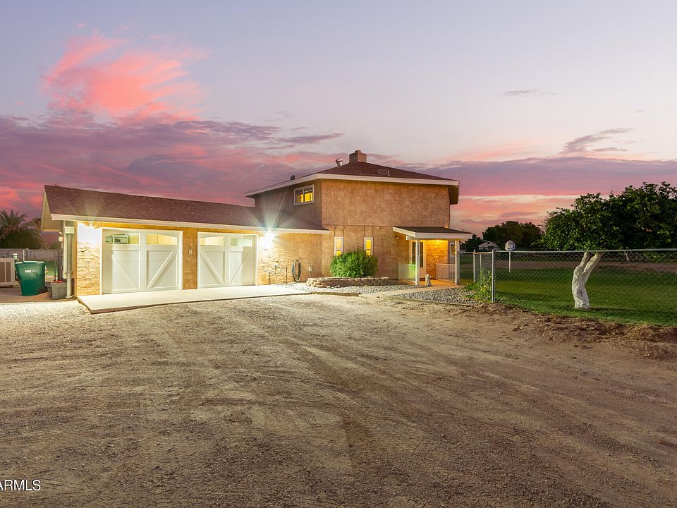Incredibly rare opportunity to own this stunning one of a kind home in the sought after area of Queen Creek! This beautiful horse property features a convenient corral along with a 2-car garage with built in storage and work bench nestled on 2.35 acres with NO HOA! The spacious open floor plan, enhanced by a wood-burning fireplace, creates an ideal layout for entertaining. A custom palette sets a welcoming tone, complemented by tile flooring and exposed beams on the vaulted ceilings. The chef's kitchen boasts stainless steel appliances,double ovens, hickory cabinets, solid surface counters, ample storage, and a center island with a breakfast bar. The versatile loft can serve as an entertainment area or in home office space. The main suite offers wood-look floors and a Jack & Jill bathroom, while an additional bonus room can be utilized as an office or media room. Not to mention, the sizable AZ room for all the activities! Wonderfully suited for family or a personal business with plenty of space for the kids and dogs to run and play. Property has a unique view of the San Tan Mountains and a fully fenced yard with mature citrus trees. Come and feel the peaceful and restful vibe throughout the home! Located in the CUSD is a little bit country in the heart of the growing city. Don't miss out on this exceptional property!