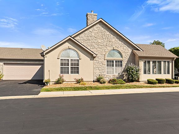 Immaculate ranch townhome in the desirable Heritage Club Villas! This 3-bedroom, 2-bath home features an open layout with vaulted ceilings, hardwood floors, gas fireplace, and a four-season sunroom. The primary suite offers a walk-in closet and en-suite bath, plus two additional spacious bedrooms. Enjoy a 2-car garage, private driveway, newer mechanicals (AC & furnace 4 yrs, roof 5 yrs). Community amenities include an outdoor pool, clubhouse with many social activities and exercise room. Conveniently located near shopping and highways. 55+ community. Estate sale being sold as-is.