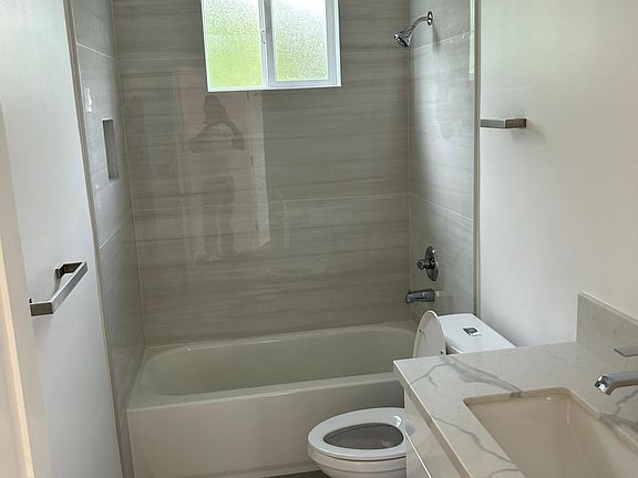 New construction. Beautiful Modern home with a smooth finish exterior. Fully fenced in and added trees for privacy. Four bedrooms with two bathroom. Bathtub in upstairs bathroom. Open Kitchen/ living room, High ceilings, solar system, stainless steal appliances, quartz countertops with white high glossy cabinets, new washer/dryer and luxury vinyl wood plank floors. Located in the heart of beautiful Reseda with views from the balcony. Two car carport. Walking distance to schools, shopping, restaurants and entertainment. Renter is responsible for all utilities No smoking Small pets ok 2 car spaces