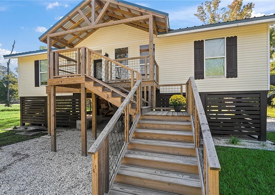 Renovated raised 4BR/2BA home in peaceful Lazy River Subdivision. This Covington beauty has deep water access to the Tchefuncte River via the Sally and Dorthy Waterways just minutes away. Located in the sought-after Mandeville School District. Features an open floor plan, fresh interior and exterior paint, new siding, granite countertops, and new luxury vinyl plank flooring throughout. The oversized primary suite offers a walk-in closet and updated bath with a walk-in tile shower. Enjoy newly built balconies overlooking the tranquil country landscape and abundant wildlife. Over 1,000 sq. ft. of covered parking and slab space below—ideal for 3+ vehicles, boat storage, or large gatherings. Minutes to deep, navigable Tchefuncte River waterway and only 25 minutes to Madisonville by boat. Public boat launch just half a block away. Convenient to Hwy 190, I-12, shopping, and dining. Move-in ready.