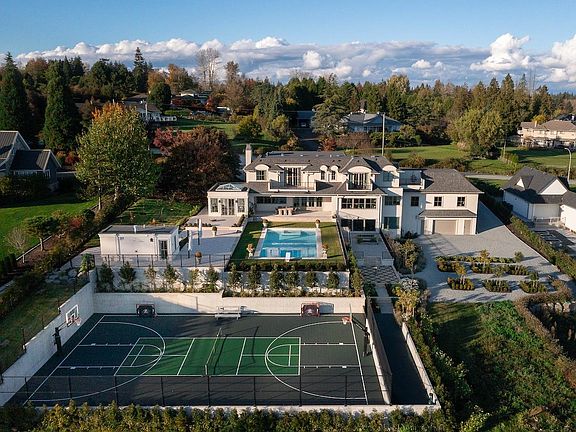 Welcome to Château des Rêves! Extraordinary architectural masterpiece by award-winning Jaheny Custom Builders, set on a private 1.5-acre estate. This landmark residence blends grandeur with contemporary sophistication, showcasing exceptional craftsmanship and the finest imported materials. The limestone exterior, dramatic rooflines, and precise detailing create a commanding arrival. Inside, Italian marble, French white oak flooring, and European-designed lighting and hardware define timeless elegance throughout. Spanning three levels with 10-ft ceilings, the home is perfectly oriented to capture sweeping water views and panoramic vistas across the Fraser Valley. A once-in-a-generation offering of unparalleled luxury, privacy, and presence!