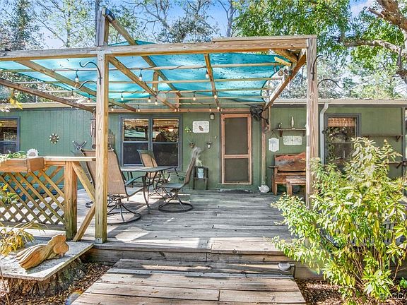 Many buyers tell us they want a place that speaks to them! You should be hearing your name echo in the breeze to the tune of Bohemian Rapsody right about now! This one-acre property is simply amazing and loaded with charm! For starters the super long driveway will have even the mailman double checking the address before getting to the gate! The property has a car/boat/RV port, a chicken coop, and a very nice 24x28 detached garage/workshop with 2-car garage door on the front and a single garage door in the back for convenience and comfort! A large 23x11 wood deck greets your friends and provides a great entertaining area to dine alfresco. Inside every nook and hook serves a purpose! The kitchen is a chef’s dream with propane gas range for cooktop and oven and a 4-door refrigerator/freezer. A pantry is tucked between the kitchen and laundry room on the way out to the covered back porch. Both bathrooms have been updated with tile floors and granite countertops and one of the bedrooms is tile flooring also. The A/C was replaced in 2021 and propane heat added in 2025. Come experience the vibe and realize your search is over!
