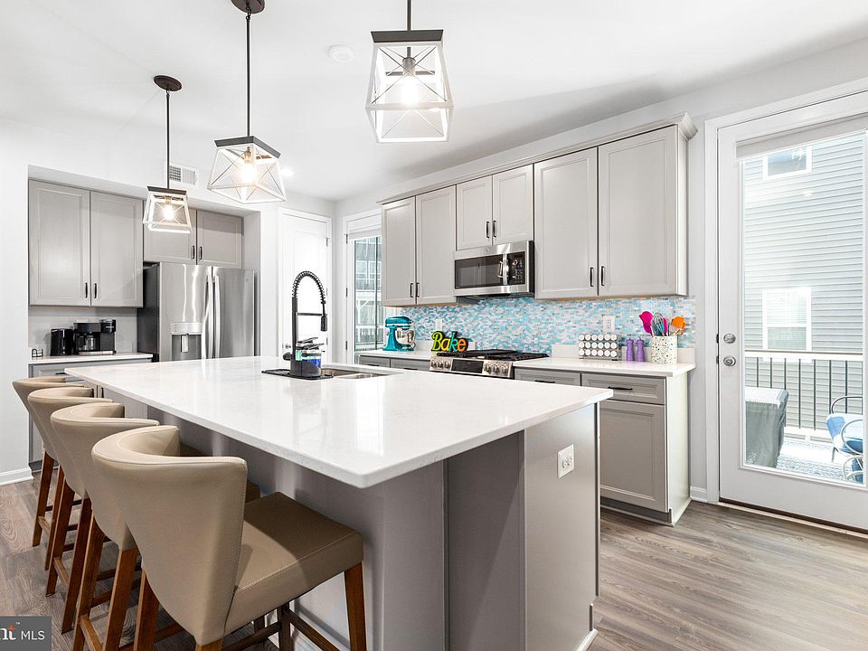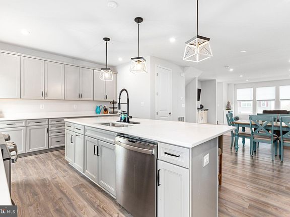 This LIKE NEW townhome, built in 2021, with its contemporary design and modern appointments, offers the perfect blend of style and functionality. With 3 bedrooms, 2.5 bathrooms, and a 2 car garage, this residence has been thoughtfully designed to meet all your needs. Addition of a deck, fencing, window blinds and solar panels make it better-than-new! A spacious floor plan seamlessly connects the kitchen, dining and living areas. This kitchen is a chef's delight featuring gas cooking, an impressive island and stainless appliances. Abundant 42" cabinetry and 2 pantries provide ample storage space, ensuring that your kitchen remains organized and clutter-free. Special touches like designer pendant lighting, elegant quartz countertops and custom backsplash create an upscale ambiance. Flanking the kitchen cabinets are 2 doors exiting onto a composite deck complete with iron railing, a perfect spot for grilling, entertaining or just relaxing. Details like vinyl wrapped posts ensure a truly maintenance free structure. Wood stairs lead to the upper level which features 3 bedrooms, 2.5 bathrooms and laundry. The primary bedroom provides a spacious retreat complete with en-suite bath and walk-in closet. An oasis awaits in the primary bathroom with its granite countertops and upgraded tile flooring and shower surround. Enjoy your morning routine with dual sinks and an expansive shower complete with transom window to allow light in while maintaining privacy! The hall bath is appointed with similar upgrades including a granite countertop and ceramic tile flooring and tub/shower surround. Two additional bedrooms are offered, one with a walk-in closet, and can be used to accommodate family, a home office or guests. Laundry is a breeze in this impressive laundry room with cabinetry for storage/organization and utility sink featuring a granite countertop. A finished lower level provides additional living space. An ideal place for TV watching or just relaxing, the finished rec room is light and bright with its windows and sliding glass door! Walk out to the rear yard featuring vinyl fencing for privacy and to create a cozy atmosphere for gatherings. Perfect for pets and small children! Additional storage, utility room and bathroom rough- in for future use are also available on this level. Parking needs are addressed with a generous 2 car garage and a driveway which will accommodate 2 additional cars! Convenience and utility are expanded with a garage door opener and storage. Throughout the home you will find welcome extras like recessed lighting, a built-in wi-fi extender, ceiling fan rough-ins, upgraded window blinds and upgraded fixtures. SOLAR PANELS were installed in 2022 and provide electric bills of less than $10/month! Situated in a PRIME LOCATION, this townhome is conveniently located just minutes to QUANTICO in the Dumfries Triangle area. Highland Park at Townsquare is a curb and sidewalk neighborhood offering a peaceful and quiet living environment. Whether you are commuting to work or exploring the local area, you'll appreciate the easy access to I-95, Richmond Hwy and VRE!