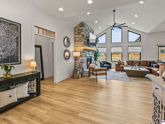 - Features: Window Covering, Fireplace, Cath./Vaulted Ceiling, Ceiling Fan(s), Luxury Vinyl Plank