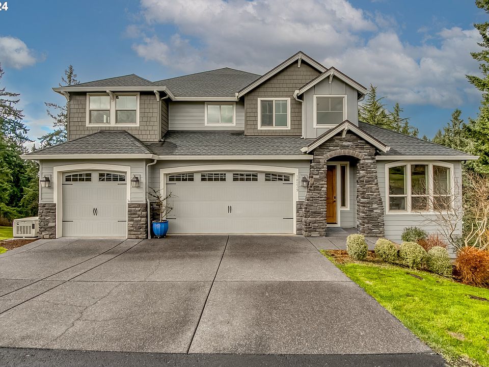 Welcome to your dream home ~ all of the work has been done! Nestled on 2 acres along a private road, this spacious craftsman residence offers the perfect blend of luxury, comfort, and tranquility. As you step inside, you'll be greeted by a stunning open great room layout, featuring a stone fireplace and a wall of windows that overlook the private backyard. The gourmet kitchen is a chef's delight, boasting a quartz island, double ovens, eating area and a convenient butler's pantry leading to the formal dining room. Ideal for entertaining guests! The primary suite is on the main floor, complete with a spacious walk-in closet & ensuite bathroom that includes both a soaking tub and walk-in shower. You will also find a versatile office or den on the main floor. Upstairs, discover 3 additional bedrooms (2 of them include walk-in closets). Complete laundry room upstairs in addition to washer/dryer hookups in the mudroom on the main floor. Plenty of easily accessible storage...the massive crawlspace is tall enough to stand up in in and has an exterior door entrance. Outdoor living is a delight with 2 decks overlooking the peaceful grounds, perfect for al fresco dining or simply relaxing. The upper deck is covered and the lower deck is complete with a remote awning for shade. Easy exterior covered storage under the decks for your lawnmower or toys. Landscaped yard, sprinkler system, 17kW backup generator & 3-car garage contribute to convenience. Don't miss the opportunity to make this exceptional property your own oasis in Oregon City.