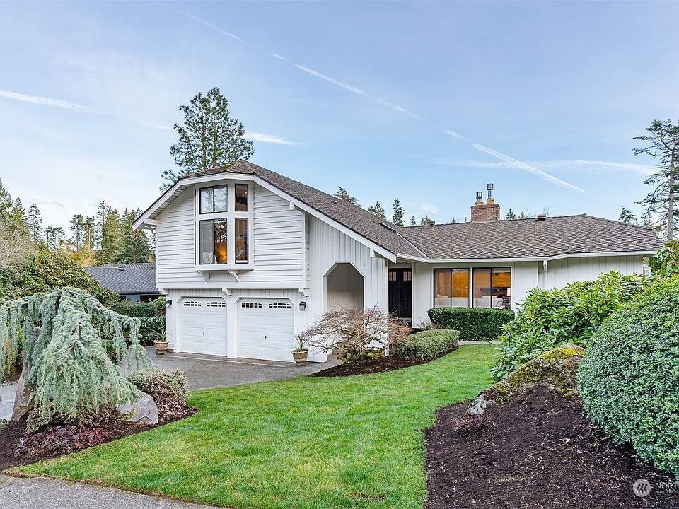 Welcome home to the 4th Fairway & the Tam O’Shanter lifestyle! Overlooking the manicured golf course & Cascade Mtns, relax in this 4 bdrm tri-level w/walk-out composite deck! Warm hdwds, fresh paint & carpet, lighting & functional floorplan. Main level living & dining areas offer expansive views. Kitchen w/SS appliances, granite & den w/gas fireplace. Upper level primary w/vaulted ceilings & renovated ba + 3 more bedrooms & full ba. LL bonus room w/french doors to covered hot tub. Utility rm, 1/2 ba + 2 car garage. Tam O’Shanter amenities: Private golf course, tennis courts, pickle ball, swimming pool, Club house/restaurant & park. Steps to award-winning Bennett Elem & Interlake High. Min to dntwn Bellevue, 520, I-90, Microsoft & Amazon.