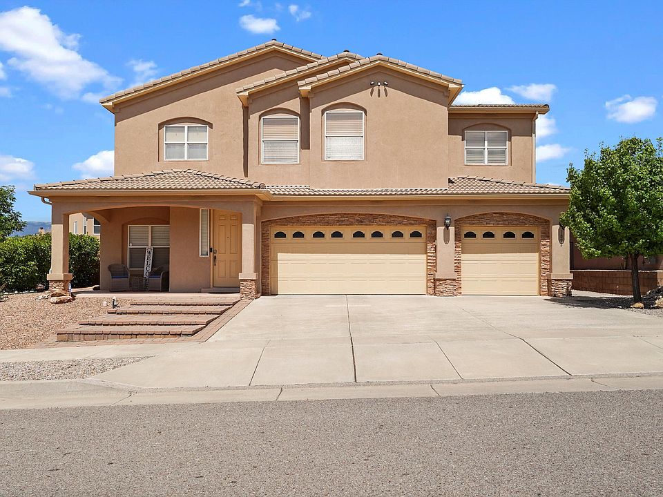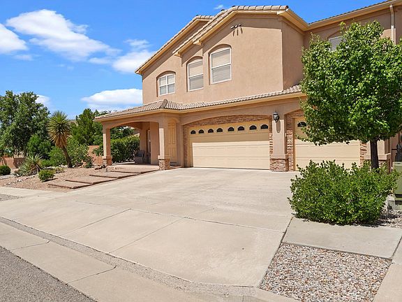 Welcome to this gorgeous 5 bed, 3 bath home in Juan Tabo Hills, conveniently located and perfect for a commute to Kirtland AFB! It has been meticulously maintained & that is evident everywhere you look! The floor plan offers so many options, boasting two large primary suites, one of which is on the main level. There are three living areas & a wonderful open concept, making it perfect for entertaining! The kitchen is truly a chef's delight, with the centerpiece being a six-burner, Wolf range & a custom, hand crafted hood. The beautiful quartz countertops, large island, Bosch SS appliances & custom cabinets are exactly what you would dream your kitchen to be. Rounding it out is a huge, walk-in pantry!