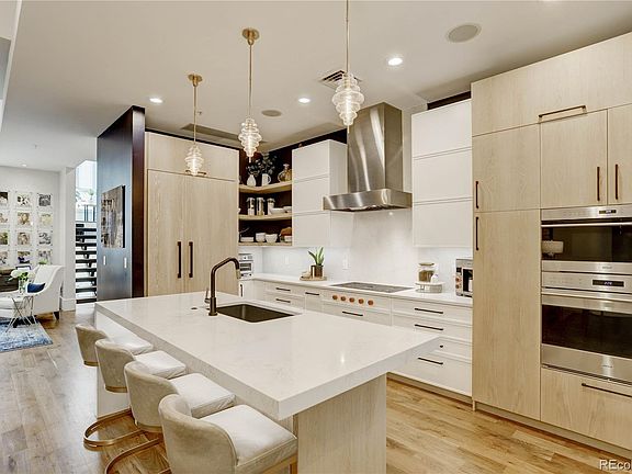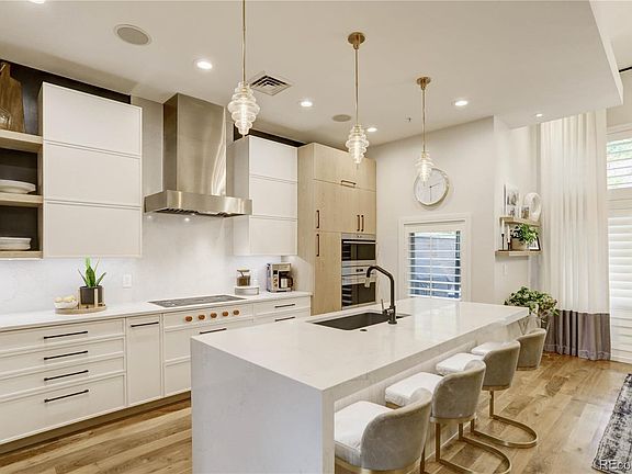 The newly remodeled custom kitchen includes luxury Sub Zero-Wolf appliances and high end motorized custom built cabinetry. The quartz countertop continues up the wall and is featured on the island waterfall. Additional home features Include|custom designed Peninsula Fireplace|Built in bar|custom lighting|modern floating staircase |solid walnut hardwood floors |updated laundry room| motorized window shades|custom draperies|custom wall coverings featured in bedrooms|high ceilings and tract lighting perfect for showcasing wall art.