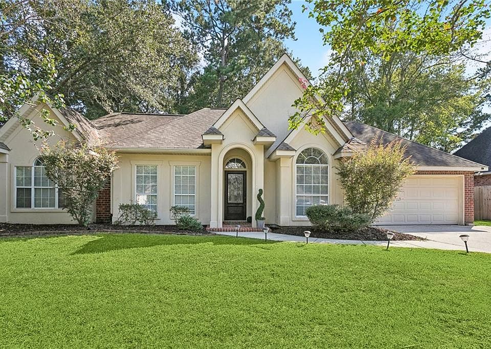 Mandeville DREAM HOME priced to sell in highly sought out Laurel Wood Subdivision with direct access to the Tammany Trace and easy access to Causeway/I-12! This FABULOUS 4bd/3bth home features foyer entrance that opens to formal dining (that could be used as an office) and spacious living room with soaring ceilings and brick fireplace (gas). Spacious breakfast nook overlooking rear yard. Galley kitchen with BRAND NEW Stainless Appliances, refreshed cabinets, and Formica counters, with large walk-in pantry. Split floor plan home with guest wing including bedroom & full bath. Primary bedroom with trey ceiling and expansive ensuite featuring dual vanities, soaking tub, walk-in shower, and two closets. Separate hallway with remaining two bedrooms and full guest bathroom. Large laundry room with washbasin. Vinyl plank and tile floors throughout. Expansive concrete patio overlooks shaded, fully fenced backyard. Subdivision has direct access to the Tammany Trace - walk, bike, or jogging path! Community pond. Flood zone C - no flood insurance required! Zoned for Woodlake/Gayle Sloan/Fontainebleau Jr & High Schools. ***HVAC system replaced end of 2024*** A MUST SEE! Make it yours today!