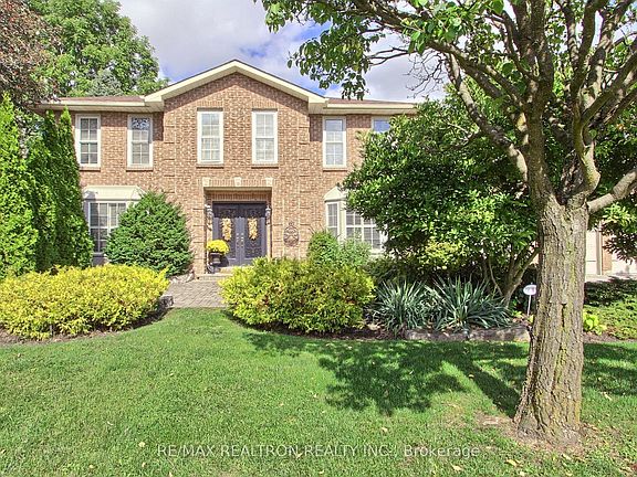 Welcome to this exceptionally spacious (3347 sq. ft!) beautifully renovated executive home nestled on almost half an acre of beautifully landscaped property with an exceptional saltwater inground pool with waterfall and three car garage! The absolutely gorgeous renovated designer gourmet kitchen with island is open to the spacious and elegant family room with custom fireplace and extra high ceilings! Bonus is the main floor office with built in desk and Bay Window! Note the high quality hardwood and travertine flooring! All extra large upstairs bedrooms have their own Ensuite Bathrooms and Walk in Closets and the Prime Bedroom offers a special 2 way fireplace and a stunning spa like ensuite 4 pc bathroom with jetted tub, heated flooring and a spacious W/I closet!! The Kitchen also features a 6 burner s/s gas stove, pot lights, a pantry and large breakfast area with custom built-in hutch and heated flooring and a w/o to back deck! Beautifully finished basement features a pool table and cozy TV area along with a gorgeous built in bar just great for entertaining!! Also in the basement is an exercise room and 2 additional bedrooms plus a 3 pc bathroom! Huge 3 car garage is insulated, drywalled and has a natural gas heater. The back and front yards have an inground professionally installed irrigation sprinkler system. This is truly a unique and elegant executive home with so many special features and upgrades and luxurious renovations throughout!!