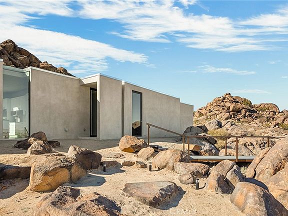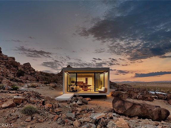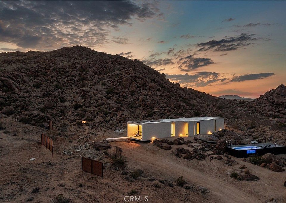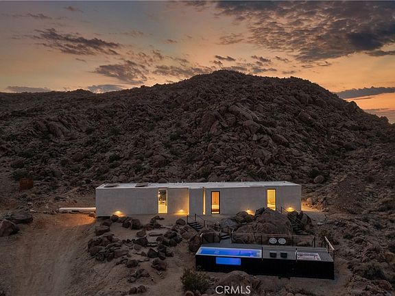 A rare architectural statement built directly into Joshua Tree’s iconic boulders, The Prism House lives like a private nature reserve — a seamless extension of the boulders themselves. Set on 5 acres that back up to protected, boulder-strewn land, it lives like 100+, offering complete privacy and an otherworldly connection to the landscape, all just 10 minutes from town. Designed by URBARC Architects and developed by KUD Development, this one-of-a-kind retreat was completed in 2022 using the cutting-edge RSG3D concrete and foam system — delivering unmatched strength, insulation, and energy efficiency. Every inch reflects design intention and craftsmanship: JennAir appliances, Eso Surfaces custom terrazzo tile, Fleetwood sliders, riftsawn oak cabinetry and doors, electric window blinds, custom LED lighting, and a built-in library with a reading nook that frames the desert light. The layout features dual primary suites plus a powder room, balancing flexibility for both personal use and high-end short-term rental income. Already a six-figure income generator, the home comes fully equipped with its branding, professional photography and video, Instagram presence, and an established luxury rental operation — making it a true turnkey opportunity. Recognized on a global stage, The Prism House earned the Platinum Winner in Household Architecture at the International Architecture & Design Awards 2025 (IADA) and the People’s Choice Award 2024 from the LOOP Design Awards. Qualifying for Airbnb Luxe (one of only a few in the desert) further elevates its prestige and earning potential. A rare work of architecture designed to disappear into the desert — and yet, impossible to forget.