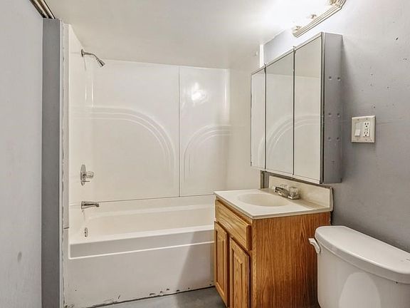 This cute updated bungalow has a lot to offer. 2 bedrooms. Main bath was recently updated to include a double vanity and new tub/shower and stool. New flooring throughout main level. Updated kitchen includes tile backsplash, stainless steel appliances, new white cabinets so bright and cheery and room for a table. Dining room with sliders to deck. New wide white baseboards adds character to the main floor. Neutral decor throughout. Spacious garage. Great location. All information obtained from seller and public records.