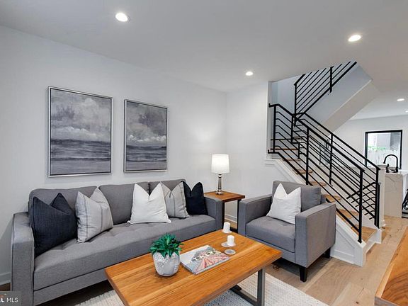 Move right into this completely renovated 2 bedroom 2.5 bath home at 1824 Olive Street in 19130. Features include white oak hardwood floors throughout, central air, spacious closet space, finished basement, w/d, yard, and rooftop deck!! The main floor offers a bright living room and modern kitchen with center island sink, marble counters, built-in microwave, and plenty of cabinets. Exit from the kitchen to the rear patio. On the 2nd level you'll find a spacious bedroom with generous closet space and a full tile bath with tub and shower combo. The upper level features a primary suite with a custom walk in closet and luxurious bathroom with double vanity and walk in shower. The dual roof deck provides 360 degree views of the city and skyline. The finished basement provides extra living space, a convenient powder room, and storage.
