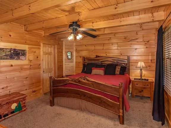 Cozy cabin with seasonal Mountain View's. Private hot tub, pool table, WiFi, community pool and mini golf. 2 king size beds, a twin over full bunk bed, and a cozy book nook.