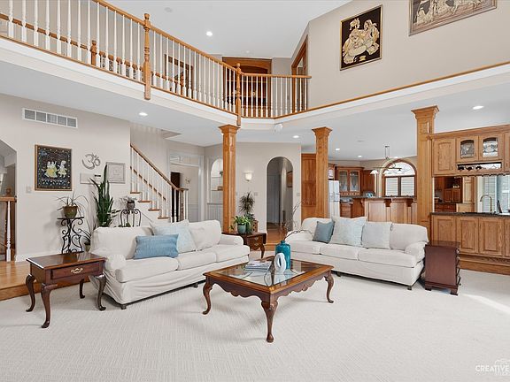 This magnificent 4700 sq ft residence (above grade) welcomes you with an impressive entrance hall featuring a curved staircase, refinished hardwood floors, accompanied by spacious Living and Dining Rooms. The two-story Family Room boasts elegant shaker-style columns and a fireplace, while floor-to-ceiling windows bathe the space in abundant natural light. The Kitchen offers ample counter and cabinet space, and the charming Sunroom can serve as a cozy dining area or a reading nook for your favorite books. Prepare to be impressed by the sophisticated Home Office on the first floor, featuring exquisite millwork such as a coffered ceiling, wainscoting, and hardwood floors. Additionally, a powder room is conveniently located on the same level. Upstairs, you'll be amazed by the generous size of all the secondary bedrooms. Bedroom #2 even includes a cozy Sitting Room, while Bedrooms #2 and #3 share a charming Jack & Jill bathroom. Bedroom #3 stands out with its hardwood floors and built-in window seat and bookcases. The oversized Bedroom #4 boasts a barrel ceiling and a private ensuite bathroom fit for royalty, whether you're a princess or prince! Bedroom #2 includes a Sitting Room! Bedrooms #2 & #3 share a Jack & Jill bathroom. Bedroom #3 has hardwood floors, a built in window seat & bookcases! Oversized Bedroom #4 has barrel ceiling & private ensuite princess bathroom (or prince!). Wait until you see the size of this Primary Bedroom! Beautiful Sitting Room surrounded by a windows. There is a second cozy fireplace in the Primary Bedroom & a charming deck overlooking the backyard. The hallway to the bathroom has his & her closets on each side. The Primary Bathroom is ENORMOUS! There is a dual sink vanity, separate shower, whirlpool tub & private water closet AND a 3rd closet! The finished lookout/walkout deep pour basement has full sized above ground windows. There is a bar area including sink & wine rack. The full bathroom in the basement has an AMAZING sauna! This home is situated on a 1/3 acre lot on a quiet tree lined street. The exterior painted in 2019. NEW ROOF 2019! 2 NEW FURNACES 2018! 2 NEW A/C 2018!
