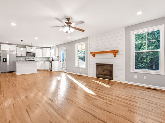Beautifully maintained three bedroom home just minutes from shopping, restaurants, and more! True hardwood floors, living room with a stylish shiplap fireplace, and gorgeous eat in kitchen with granite countertops, stainless steel appliances, and a spacious island for all your culinary needs! The large primary suite features a full bath with double vanity and a generous walk-in closet! Both guest rooms are generously sized! The outdoor space is perfect for relaxation and entertainment, featuring a covered deck and a tree lined lot that provides both privacy and tranquility!