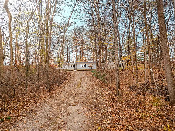 (THIS PROPERTY WILL BE OFFERED IN AN ONLINE AUCTION CLOSING ON TUES., JAN. 14TH AT 6 PM. The LIST PRICE is the STARTING BID of the online auction, not what the property will sell for.) Escape to your own private oasis on this 1.5+/- acre wooded lot featuring a charming 3-bedroom, 2-bathroom manufactured home with a detached 2-car garage and workshop. A picture-perfect tree-lined driveway welcomes you, leading to the home’s inviting covered front porch and welcoming foyer. Inside, the spacious semi-open floor plan boasts a living room with high ceilings and a breakfast bar connecting to the kitchen. The kitchen is a standout, complete with oak-front cabinets, a wall oven, stainless steel sink, and ample storage—perfect for your culinary adventures. Off the kitchen, you’ll find a mudroom with washer and dryer for ultimate convenience. The dining room flows seamlessly to the guest wing of the home, complete with a full bathroom and two oversized guest bedrooms, each offering ample space and natural light—perfect for family, friends, or versatile living needs. Retreat to the massive primary bedroom, featuring a stunning wall of windows overlooking the wooded yard, a large closet, and an ensuite bathroom with a double vanity, garden tub, standup shower, and private toilet area. The property also includes a detached garage with a workshop, complete with a woodstove hookup—perfect for hobbies or storage. Surrounded by nature, this home offers the peace and privacy you’ve been searching for, while still being just a short drive from local amenities. Recent updates: New flooring throughout, baseboards, and roof!