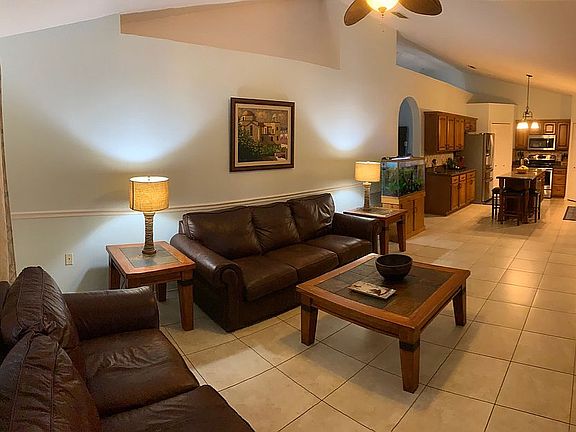 Beautiful, updated, open-concept, 4BR single-family home located in quiet, family-friendly neighborhood with low HOA fees and a children's playground in area. Large, privacy fenced backyard with mature fruit trees, custom made greenhouse, ample room for a child's play set and /or pool. Large screened-in lanai with ceiling fans and pet door. New roof 2018 and new AC air handler 2019. Modern, updated kitchen with stainless steel appliances, granite countertops, custom made cabinets with pull out-shelves, large island with prep sink, also large double sink with disposal and 2 walk-in pantries. Family eating area on the side and large family room, both with ceiling fans.. Large living room with dinning area. Large master bedroom with 2 (his and her) walk-in closets and en-suite featuring large soaking tub, separate shower, and closed toilet area. 3 BRs located on opposite side of house with second full bath. All BRs have ceiling fans. Laundry area, coat closet with custom built shelves and linen.closet. Beautiful tile floors in all areas except BRs that have laminated wood flooring. Attached 2 car garage. Centrally located with access to easy shopping. Close to major highways and approx. 25 mins from Disney, other Theme Parks and the Orlando Airport.