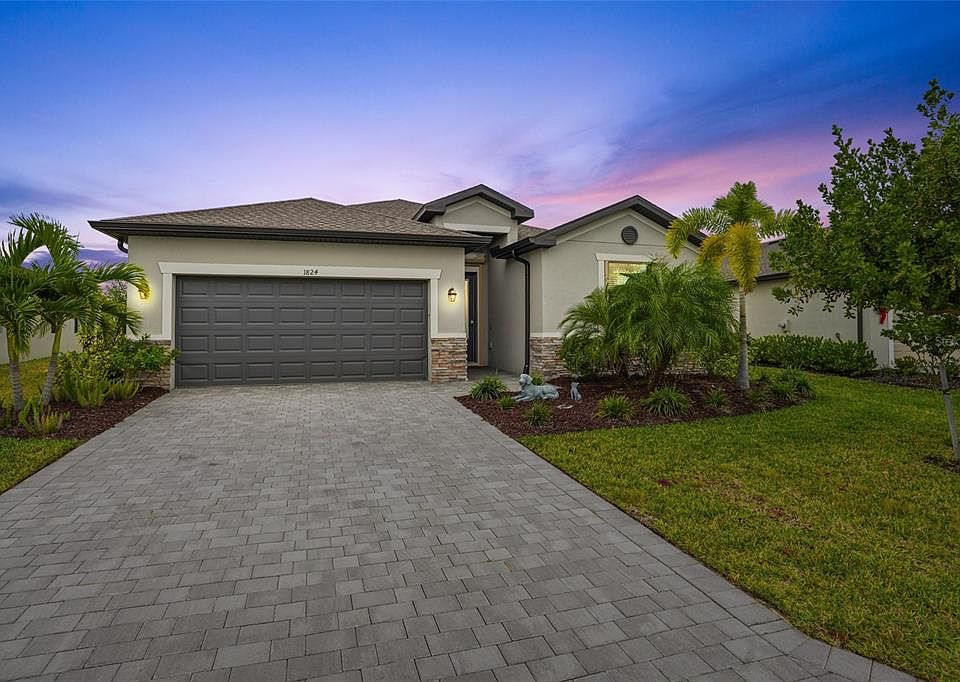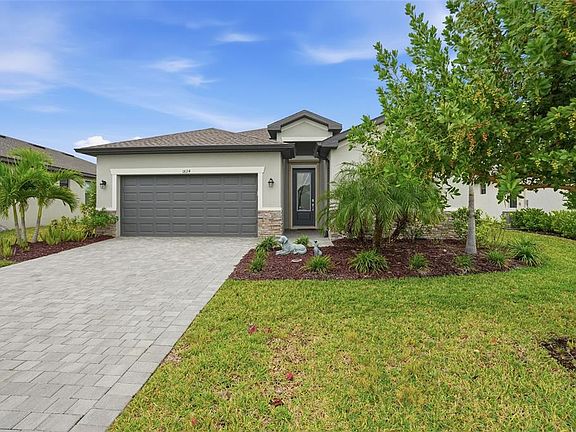 Live the Florida Dream in Style — Stunning 4-Bedroom Trevi Model Home: Discover the perfect blend of comfort, elegance, and Florida living in this like-new Trevi model featuring 4 bedrooms and 3 full bathrooms. Nestled within a newer gated community offering a resort-style clubhouse, fitness center, heated pool, and pickleball courts, this home delivers the best of relaxed coastal living with everyday convenience. Unbeatable Setting & Serene Views: Enjoy breathtaking sunset views from your private screened lanai, overlooking a peaceful partial lake view and wooded preserve. The tranquil backdrop brings nature to your doorstep — watch herons and eagles glide above as you unwind in your outdoor oasis. Elegant Interiors with Designer Touches: Step through a leaded glass front door into a spacious foyer that opens to an inviting, light-filled interior. The home features tile flooring throughout, ceiling fans, and dramatic designer lighting that adds warmth and sophistication to every space. The open-concept layout seamlessly connects the gourmet kitchen, dining area, and living room, perfect for entertaining and everyday living. The kitchen impresses with 42” soft-close cabinetry, granite countertops, stainless steel appliances, pendant lighting, subway tile backsplash, and a walk-in pantry—everything today’s homeowner desires. Spacious & Versatile Living Spaces: Two guest bedrooms with generous natural light and closets share a full bath with granite-topped vanity and a tub/shower combo. A fourth bedroom with its own private bath makes the perfect guest suite or private home office. The primary suite offers a peaceful retreat with two walk-in closets, double vanities with granite counters, and a luxurious walk-in shower. Outdoor Living Made Effortless: Step outside to your screened lanai and fenced yard, where evenings are bathed in glowing sunsets. With electric roll-down hurricane shutters and upgraded honeycomb blinds, you’ll enjoy comfort, safety, and style year-round. Community & Lifestyle: This golf cart–friendly community features underground utilities, sidewalks, and streetlights—perfect for strolls at sunset. Every detail is designed to complement your Florida lifestyle. ? Don’t just move — live your dream. Come experience this exceptional home and discover why life truly is better under the Florida sun.