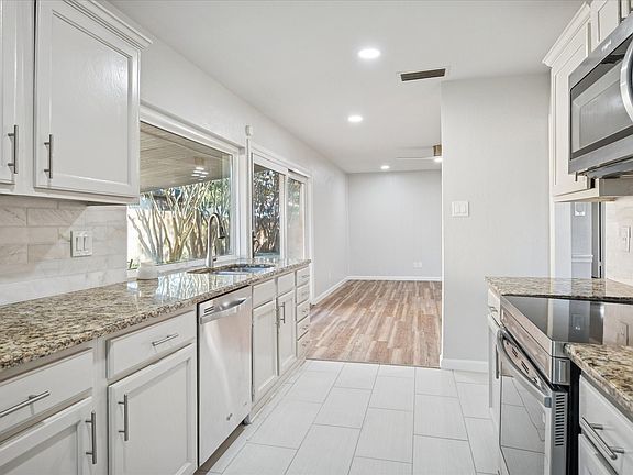 Move-in ready and meticulously maintained, this 3-bedroom, 2-bath Plano home features a split-bedroom floor plan and freshly painted interiors. Waterproof luxury vinyl flooring flows through the main areas and bedrooms, complemented by ample storage, including a pantry in the kitchen and multiple linen closets. The updated kitchen boasts a new stove, freshly painted cabinets, granite countertops, a marble backsplash, and a large window overlooking the east-facing patio, seamlessly connecting to the living and dining areas. The primary suite includes a walk-in closet and private bathroom, while secondary bedrooms are bright and comfortable. Upgrades include a new electrical panel for peace of mind, plus energy-efficient low-e windows and patio door, and 12+ inch attic insulation. Open living spaces flow to an inviting covered patio and fenced backyard, ideal for entertaining or relaxing. This home combines comfort, style, and energy efficiency in a well-established Plano neighborhood, close to schools, parks, trails, and shopping. Very clean and thoughtfully updated, this turnkey home is ready for its next owner.