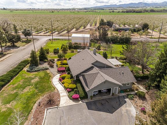 Turnkey Horse Property with 100x200 Indoor Arena & Almond Orchard on 25 Acres. Dream equestrian estate, including 20 acres of producing almonds. Features a spacious indoor arena with 10+ stalls, tack room, hay storage, wash rack, and round pen. Detached garage/shop with cement floor fits RVs or trailers. The custom home offers a new roof, dual-pane windows, updated kitchen & primary bath, plus a bright open floor plan and covered patio overlooking landscaped yards. Almond orchard (Winters, Carmel & Mission on Krymsk rootstock) is 10 years old, irrigated by ag well, with district water available. Seller maintains orchard and hires out harvest. Well and septic reports on file. Not in fire hazard zone. Also available is the 28-acre parcel across the street (18341 County Road 86)combine both at a discounted price for 50+ acres, ideal for a family compound or expanded agricultural operation.