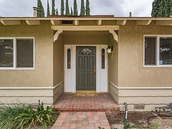Wonderful Ranch Style home located in Porter Ranch with beautiful curb appeal, this home welcomes you to a white fence surrounding the front yard with well-maintained landscaping, interior features open living area with gas fireplace, formal dining area that opens up to the kitchen, bright kitchen with plenty of counter space and large walk-in pantry, large family room with vaulted ceiling, hard wood throughout, remodeled guest bathroom with double sinks, private master bedroom, with two additional bedrooms, backyard features large entertaining backyard with covered patio with pavers, grassy area, pond with waterfall, vegetable garden area, fruit trees, Over sized 2 car detached garage with room for a workshop or storage, private driveway with possible RV access, located in the highly sought after Granada Hills School District.