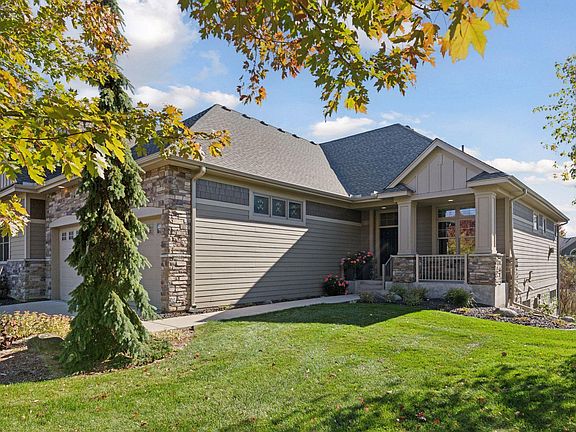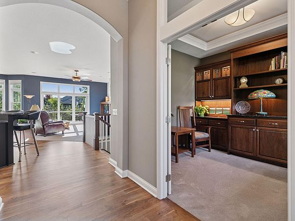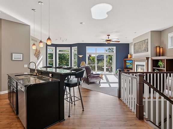 Nestled in the prestigious Bellante neighborhood, this twinhome is the epitome of luxury and convenience. Open and spacious rambler-style floorplan with all the living on the main level. Enjoy soaring 10’ ceilings, gourmet kitchen with enameled cabinets and gorgeous black walnut hardwood floors. the oversized garage & many amenities nearby. A main level living concept sets this home apart, featuring the primary bedroom, office, and laundry room all on the same floor. Walls of windows allow for so much natural light to shine on in! The generous sized primary suite come complete with a custom tiled walk-in shower, double sinks and custom makeup vanity with built-ins. Conveniently located laundry room off the primary suite w/upper and lower cabinets. Step out onto the maintenance-free deck for a serene outdoor escape. Every detail reflects meticulous craftsmanship, from the custom cabinetry to the hardwood flooring. The lower level offers 2 BR bedrooms, bathroom, & an expansive family room with fireplace and bar with dishwasher, wine fridge and microwave. Enjoy the benefits of association-maintained living where you can turn the key and go. Overlapping showings allowed. Agents and buyers to verify all data and measurements.