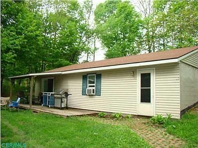 House on 5.684 Acres of mature woods...total seclusion, except for turkey and deer. Up a long winding PAVED drive this home was built 16 yrs ago to eventually be the basement of a ranch home to be built above it. Present owners enjoyed it for 16 years as a 1 BR, 1 Bath Ranch. You can, too, or you can add a floor above it. 16x16 detached garage w/concrete floor. Propane furnace. Sellers heated most with pellet stove. Includes mineral rights (2012 revenue $2100).