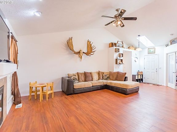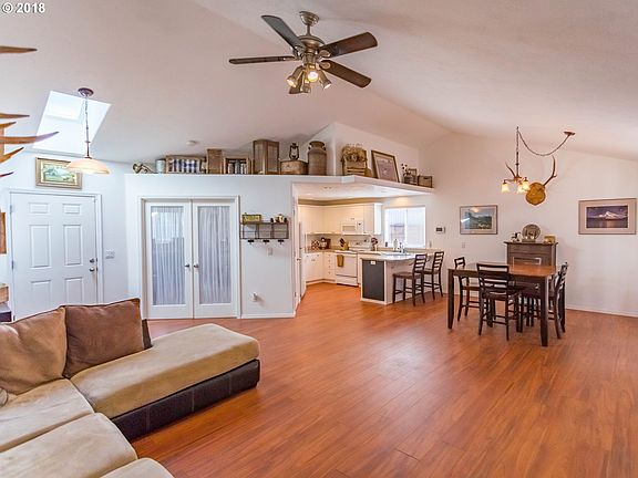 Nice one level home with open floor plan feels bigger than it looks! Vaulted ceilings, new laminate floors, skylights, and gas fireplace. Master w/bath and vaulted ceilings. New roof installed this month! Slider off the dining area leads to huge deck great for entertaining! Private back yard backs up to wooded area. Bedroom/office with french doors. 10x12 tool shed. Great neighborhood! No HOA's.
